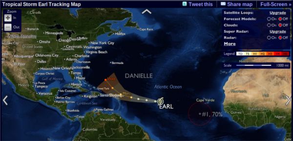Stormpulse – Monitoramento de furacões e ciclones em atividadeO Stormpulse é um site que permite monitorar, praticamente em tempo real, a evolução das grandes tempestades e furacões que acontecem a cada ano, ao redor do mundo. A página principal mostra um grande mapa animado que traça a trajetória e a categoria (intensidade da tempestade) previstas para cada hora, através de dados meteorológicos, podendo mostrar também informações sobre velocidade dos ventos, de deslocamento e pressão atmosférica – e é possível acompanhar cada furacão e ciclone em separado. Outra funcionalidade interessante é que o Stormpulse possibilita o compartilhamento destes mapas no Twitter ou no Facebook, o que ajuda na hora de informar regiões em perigo, em casos de alerta. Acesse: Stormpulse |